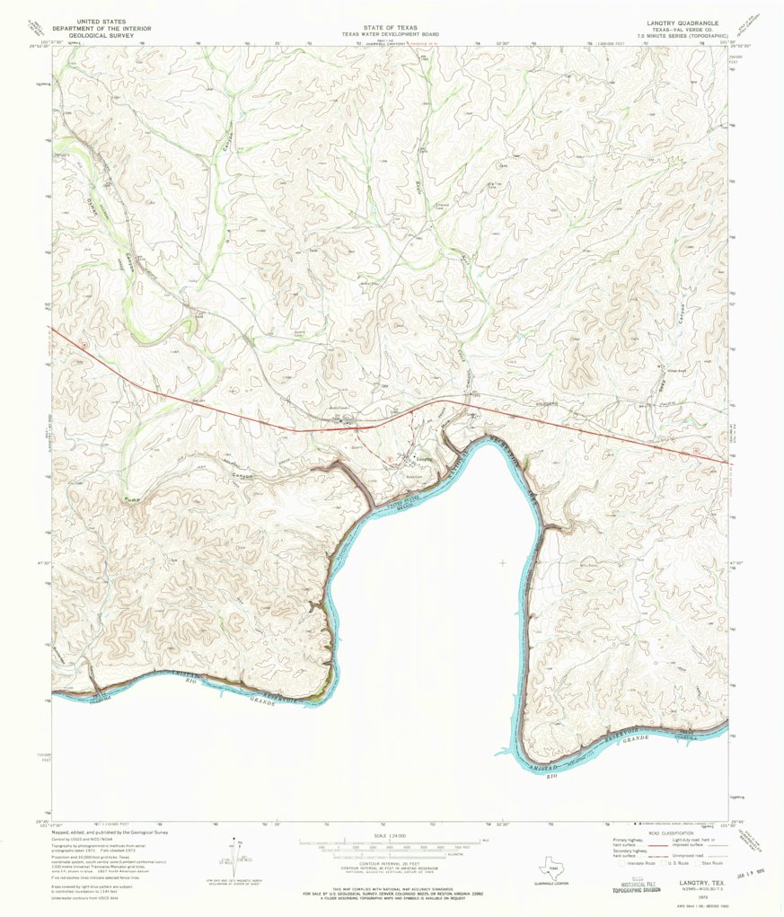 Langtry, TX (1973, 24000 Scale) Map by United States Geological
